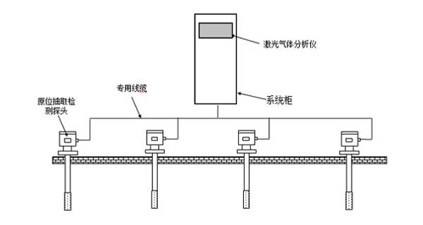 该系统采用的是多点分式的半导体激光在线分析系统。核心部件是半导体激光气体分析仪。系统采用一拖多的光纤检测方式,取样探头内置检测池,全程快速实时检测,最多可以连续在线检测8个点。系统示意图请参考图2。