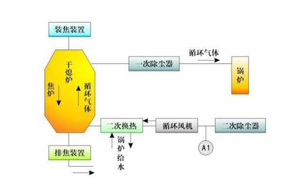 熄焦有湿法熄焦和干法熄焦两种方式。前者是用熄焦车将出炉的红焦载往熄焦塔用水喷淋。后者是用1 80°C左右的惰性气体逆流穿过红焦层进行热交换,焦炭被冷却到约200°C,惰性气体则升温800°C左右,并送入余热锅炉,生产蒸汽。每吨焦发生蒸汽量约400 ~ 500公斤,干法熄焦可消除湿法熄焦对环境的污染,提高焦炭质量,同时回收大量热能,但基建投资大,设备复杂,维修费用高。针对目前国内普遍使用的干熄焦方式,我们为客户提供ZN-CDQ系统,保证安全同时有效提高气体回收率,为客户创造更大的效益。